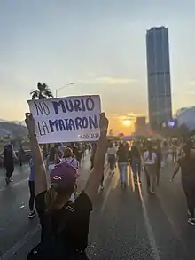 On April 9, 2022, Debanhi Susana Escobar Bazaldúa a Mexican eighteen-year-old girl, disappeared, and sixteen days later, on April 22, was found dead in a cistern in a motel in General Escobedo, in the Monterrey metropolitan area, with signs of physical violence.[1][2] The killing of Debanhi has caused commotion in Mexico after the viralization on social media of a Debanhi's photo and in the middle of a lonely road. The case, investigated by the Nuevo Leon prosecutor's office as a femicide,[3] comes amid a crisis of missing women in Nuevo León and Mexico.[4]