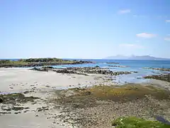 A rough track (access on foot only) leads to very beautiful, wild and unspoilt Kilmory Bay, a sheltered bay with clear water, white sands and black, volcanic rock. It is one of the few sandy beaches on Ardnamurchan.