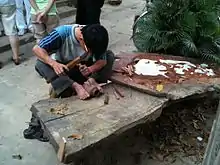 In more recent years, woodworking as a profession fell out of favour with young people, mainly due to poor returns: the average income of a woodworker in Kim Bồng is about VND 1.5 million (US$85) per month. By the 1990s, few master carvers remained in the village. To help promote the profession, Cẩm Kim commune created a program allowing young people to receive free training in carpentry and woodworking, along with providing a monthly stipend of VND 150,000 ($8) and tools of the trade.[1] Training courses are provided by master carver Huynh Ri, whose family includes 12 generations of woodcarvers. Several other local woodworking studios also provide on-the-job training to apprentice woodcarvers. These training programs have resulted in an increase in skilled woodworkers: the village numbered over 200 workers and 18 different woodcarving companies as of 2008. These results were lauded by UNESCO as "keeping the traditional skills and intangible heritage of the town of Hoi An and its surrounding villages alive".[2]