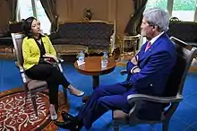 ![]() Ghattas interviewing U.S. Secretary of State John Kerry in 2014 | |