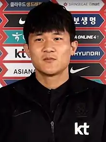 On 14 August 2017, Kim Min-jae was named in South Korea's squad for the 2018 FIFA World Cup qualification against Iran and Uzbekistan.[40] On 31 August 2017, Kim made his international debut against Iran in the 2018 FIFA World Cup qualification. Being named in starting line-up, Kim showed a great performance until he was substituted with six minutes remaining by Kim Ju-young. During the match, Saeid Ezatolahi was shown a red card when he stepped on Kim's head.[41] On 5 September 2017, Kim played for full-time against Uzbekistan.[42] In the two games that Kim Min-jae took part in, South Korea kept a clean sheet. After these matches, South Korea had qualified for nine consecutive FIFA World Cups.[43] But he was injured on 8 May 2018 and unable to take part in 2018 FIFA World Cup.