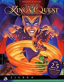 The name of this entry, The Princeless Bride, is a pun on the title of The Princess Bride. Like most King's Quest titles, it is also a reference to the plot: Princess Rosella is soon to be a bride, but ends up in another world shortly before her marriage. It is the only entry in the series to feature Queen Valanice in a major role, and also the only one in which King Graham is not shown or mentioned at all (with one minor exception in version 1.4).[note 1] Sierra marketed the game as an improvement in the series by stating that completion of earlier KQ adventures was not necessary to fully enjoy the game, even though the final chapter revealed a strong connection to the events of King's Quest IV.