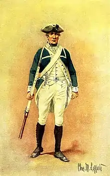 The King's Royal Regiment of New York was formed by exiled Loyalist leader, Sir John Johnson, from American refugees, fleeing rebel persecution,[1] the regiment served with distinction throughout the war, launching raids and relief missions into the Mohawk Valley of New York.