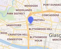 The theatre occupies the corner of Bath Street and Elmbank Street, in the Charing Cross area of the city. The longer Bath Street elevation houses both the main entrance, the scenery dock and stage door. The equally decorative but shorter Elmbank Street elevation has various fire exits and the entrance to the Gallery.