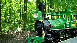 The Kings Island & Miami Valley Railroad is a 3 ft (914 mm) narrow gauge heritage railroad and amusement park attraction located at Kings Island in Mason, Ohio. The line is a 5,282-foot (1,610 m) loop. The line has two stations: the Losantiville station (the main station) also commonly referred to as "Rivertown Station" and a station at Soak City. It is a part of the rides department, and has a thrill rating of "1 - Low Thrill Ride". The entire journey lasts between 9 and 15 minutes, depending on station stops and number of trains in operation. The Kings Island & Miami Valley Railroad is one of the oldest and consistently popular attractions at Kings Island.