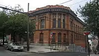 The former 50th Precinct Police Station House is an example of Beaux-Arts classicism, an architectural style typical for public architecture at the turn-of-the-century that became the emblem of the City Beautiful Movement. Its style, scale, materials of construction, direct relation to the street, and ornament contribute to the monumental character, which distinguishes the building from the surrounding structures.[4]