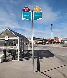Kingston Centre Transfer Point[2] is located in the heart of the shopping centre and is a major transfer point for Kingston Transit. It is the terminus for daytime routes 2, 3, 11 and 12 with routes 4 and 16 passing through.[3] Routes 501/502 and 701/702 also connect with the Kingston Centre through nearby road stops.