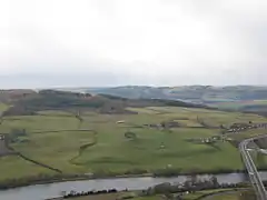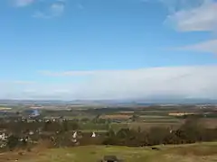 [The view] commands the lower course of the Tay and its estuary, widening out between the level expanse of the Carse of Gowrie, thickly sprinkled with farms and mansions, and the opposing shores of Fife, onward to where it is closed by the smoke of Dundee and the line of the Tay Bridge.
