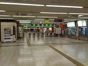 Kintetsu-Nippombashi Station (近鉄日本橋駅, Kintetsu-Nipponbashi Eki) is a railway station on the Kintetsu Namba Line in Nippombashi Itchome, Chūō-ku, Osaka, Japan. Trains of the Nara Line arrive at and depart from the station.[2]