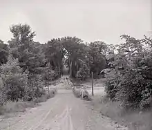 The Six Points interchange with Bloor and Ontario's early Toronto-to-Hamilton highway, now Dundas has traditionally been Etobicoke's central intersection. In 1953 Etobicoke left York County and joined the newly formed Metropolitan Toronto launching a period of urbanization which included changing the Six Points intersection to use a number of bridges in 1961.[9] In 2017, construction started on a project to remove the interchange and replace it with at-grade intersections. In March 2019, the interchange was closed and the bridges were removed.[10]