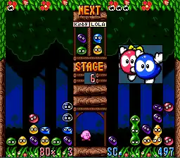 While the core gameplay remains the same, the Japanese and Western versions are drastically different cosmetically. As the story in Super Puyo Puyo is more focused on Arle and Carbuncle's adventures like the Madou Monogatari and Mega Drive Puyo Puyo versions, the Western version replaced them with Kirby characters to appeal to Western audiences.