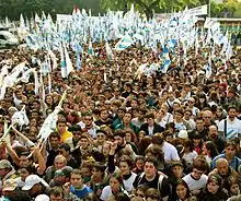 - Initially, Kirchnerism has shown itself to be concerned with the defense of human rights, particularly in prosecuting those who committed human rights violations during the Dirty War and were later made immune from prosecution by the governments of Carlos Menem (1989–1999). The willingness of the Kirchner government to revoke these immunities has led many Argentine pressure groups, such as the Madres de Plaza de Mayo and Abuelas de Plaza de Mayo, to take an actively Kirchnerist position.[17] This has led to many controversies and to allegations that the Kirchners were never fully committed to human rights, especially during the period of the last military dictatorship, and that it was only when Kirchner became President and began to make alliances with the left-wing parties in Congress and with the Madres de Plaza de Mayo that he started to campaign about these rights in order to promote his own platform and gain popular favor. It is documented nevertheless that the Kirchners did push for trial against human rights violators during the dictatorship, although late in that period in 1983, when its end was already in sight.[18]