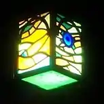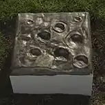 In the years leading up to the 2012 transit a group of Scottish artists collaborated on an artistic realisation of the Solar System model of Erskine. The Kirkhill Pillar Project was commissioned under the auspices of Artlink Edinburgh.[19] The Sun is represented by a light box on the top of Broxburn academy, within a few hundred metres of the Erskine's own house. The artefacts representing the nine planets are distributed around the county of West Lothian at distances given by Erskine's scale. Mars and Jupiter are represented by small spheres mounted on plinths. Mercury is represented by a cast iron replica of the cratered surface of the predominantly iron planet. Venus is represented by a schematic version of its transit over the face of the Sun. Earth, inspired by the blue and white image seen on early space missions, is represented by two planters containing blue and white flowers. Mars is a distinctive red sculpture in community woodland. A cast acrylic clear block houses a painted model of the planet Jupiter. Saturn is represented by a technical image used by James Clerk Maxwell in his explanation of the structure and stability of the rings.[20] Uranus is represented by a band suspended from two trees: it houses seven opaque apertures which allow the light to shine through. Neptune is captured as a blue orb in a lantern above the doors of Kingscavil church. Pluto is carved into black polished granite placed in Beecraigs Country Park. Images, further details and a map of locations may be found at may be found on the website of the Kirkhill project.[19]