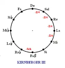 Kirnberger temperament is an irregular temperament developed in the second half of the 18th century by Johann Kirnberger. Kirnberger was a student of Johann Sebastian Bach, held great admiration for his teacher and was one of his principal proponents.[1]