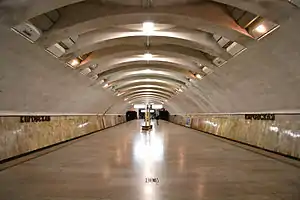 Kirovskaya is a station on the First Line of the Samara Metro. It opened on 26 December 1987.[1] It is in the Sovetsky district of Samara. The station's name comes from the street on which the station is situated, Prospekt Kirova, which is named for Bolshevik leader Sergey Kirov.