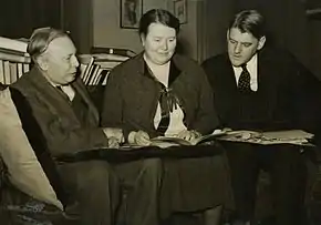 In 1932 Lake's personal affairs produced quite a scandal. On 18 August 1932, Lake obtained a Reno divorce from his first wife Helen, whom he had been separated from for five years.[18] Then, on 16 December 1932, he married his former student and collaborator Silva Tipple New (18 March 1898 – 30 April 1983). She was 26 years his junior, married, with three children. They had one child John Anthony Kirsopp (b. 13 June 1928).[1] At the time Silva was a professor of classics at Bryn Mawr, and an accomplished scholar in her own right. She would continue to collaborate with Lake for the rest of his life. The divorce caused such a stir that Lake was forced to resign the Winn chair on 28 September 1932 and became professor of history in Harvard College, a position he held until his retirement in 1938.[19][20] Perhaps their most significant project was a magnificent series of ten large albums of facsimiles entitled Dated Greek Minuscule Manuscripts to the Year 1200 (1934–39). These portfolios of reproductions were organised by location and contained photographic specimens of some 400 manuscripts. These were important publications, for they encouraged scholars to look beyond the more well known manuscripts and realise the worth of encompassing a wide range of textual variants in any editing of the Greek text.[13] Together they also founded in 1934 a series of monographs entitled Studies and Documents and contributed a valuable study in 1941 on Family 13 (The Ferrar Group), another New Testament manuscript group.