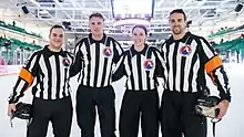 Kirsten Welsh (born 1997) is a Canadian ice hockey official, currently serving as a linesman in the American Hockey League (AHL) and Ontario Hockey League (OHL). A retired ice hockey defenceman, she played college ice hockey with the Robert Morris Colonials in the College Hockey America (CHA) conference of the NCAA Division 1 during 2015 to 2019.[1][2]