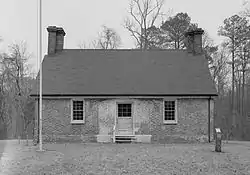 It is one-and-a-half stories, built with a gable roof at a relatively steep pitch of 55 degrees. All four walls were laid in Flemish bond, with English bond below the glazed water table. It has a central passage plan and the entrance facade on the west is symmetrical, with a central doorway. Due to a fire in 1915, much of the interior was destroyed but the house is structurally preserved.[3]