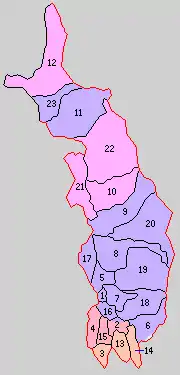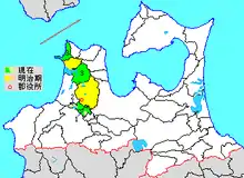 Purple= Goshogawara City, Orange=Itayanagi, Red= Nakadomari, Peach=Tsuruta