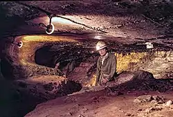 ![]() A passage within Kitley Show Cave in the 1980s | |