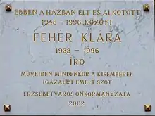 Klára Fehér (21 May 1919 – 11 September 1996) was a Hungarian writer.