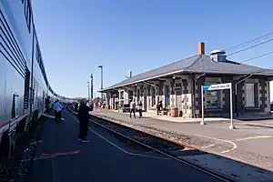 Klamath Falls station is a train station in Klamath Falls, Oregon, served by Amtrak's Coast Starlight. Located at 1600 Oak Avenue, the station building has a waiting room with a ticket agent. Klamath Falls is the southernmost station in Oregon.[2] Via bus connections, it serves a large swath of southwestern Oregon, including Medford.