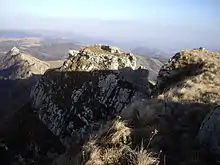 Kldekari Fortress (Georgian: კლდეკარის ციხესიმაგრე) a historical fortress in Georgia, Trialeti, on the rocky peak of Trialeti Range near spa town Manglisi, Tetritsqaro Municipality. From here you can see the area around the south, Tsalka and Manglisi, as well as the north - river Tanis and Tedzmi Valleys. The ruins are currently preserved. It was located at an important crossroads, where a molten rock formed an exit, name Kldekari means the rock door.[1]