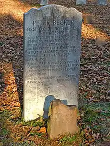 The Klein Meetinghouse is a historic Dunkard (Schwarzenau Brethren or Church of the Brethren) meetinghouse in Harleysville, Pennsylvania built in 1843. The second oldest congregation of the Brethren in the United States, which was founded in the area in 1720, built the meetinghouse, and the adjoining cemetery contains the remains of Peter Becker, who led the Brethren to America in 1714.[2]