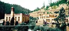 Plans for a health spa gave way to a large bottling plant to supply Safeway with bottled water. However, although the bottled water was well liked it wasn't possible to keep the water clear and the bottles would soon go flat. After the owner, Mr. Langdon of Walla Walla, Washington, took his own life, in 1931 Raymond Newbern was sent by the Baker-Boyer Bank of Walla Walla to investigate the property to determine if it could be developed. Mr. Newbern concluded there was no future in mineral water and decided that there was a future in dry ice. Tests showed the CO2 was pure. Newbern took a 99-year lease on the property and formed the Gas-Ice Corporation. After 4 years and $200,000 of investment in plant equipment the company generated a small profit in 1936. Demand for dry ice grew, prompting more wells to be drilled and expansion of the facility. It eventually reached maximum production of 18 tons per day, limited by the available gas flow in the area.[3] In 1957 Newbern expanded capacity in Kennewick, Washington where CO2 was a by-product of ammonia fertilizer production. In 1968 he sold his holdings and the Klickitat plant was closed. In 1972 the property was sold to the Washington State Department of Game. The main building of the dry ice plant complex has been retained as a sanctuary of swifts, which nest in the chimney.[4]