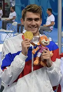 He made his debut at the 2017 World Aquatics Championships, where he competed in three backstroke events and set two world junior records.[1][2] In December 2017, he set a short course 100m backstroke world record at Vladimir Salnikov Cup, becoming the first swimmer born in the 2000s to hold a world record in an individual event.[3]
