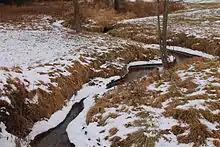 Hemlock trees are one of the dominant tree species in the vicinity of Kline Hollow Run. There are also small and herbaceous openings along the stream. These openings are likely to contain wet meadows, with various sedges, shrubs, and wetland plants.[5]