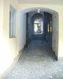 Klockgjutargränd (Swedish: "Bell-Founder's Alley") is a small alley in Gamla stan, the old town in central Stockholm, Sweden. Passing under a low vault, it connects the street Västerlånggatan to the public square and courtyard Brantingtorget, forming a parallel street to Salviigränd and Kolmätargränd.