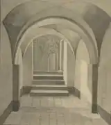Klostergården is part of a large block which is bounded by Højbro Plads to the east and Hyskenstræde to the west. The façade on Amagertorv is 10 bays long and has a four-bay central projection. A frieze with lettering between the first and second floor reads Monumentum Pietatis Petersenianae ("Memorial to the piousness of Petersen"). A gate to the right of the main entrance opens to a passageway, Klostergangen, which continues through three small courtyards before reaching Læderstræde on the other side of the block. It dates from Helveg-Møller's renovation in 1918.[4]
