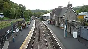 There are two platforms at the station today, although from 1964 until 1990 only a single line and platform (the current southbound one) was used. The 30 miles (48 km) long block section between Craven Arms and Llandrindod Wells was considered to be a capacity bottleneck (even on such a lightly used line) however and following the modernisation of the route signalling in 1986,[2] an additional passing loop was installed here to provide extra capacity, with the disused second platform being refurbished and returned to use by British Rail. The northbound loop (and platform) was out of action for more than two years but was put back into use by Network Rail in September 2010 following the replacement of the old automatic points (which were obsolete) with new electrically worked ones.