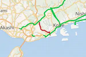 The Kobe-Yamate Route (神戸山手線, Kobe-Yamate-sen), signed as Route 31, is one of the routes of the Hanshin Expressway system serving the Keihanshin area. It travels in an south to north direction within the city of Kobe from the city's Nagata ward to Kita ward, with a total length of 10.2 kilometers (6.3 mi).[1]