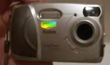 The Kodak CX4200 Digital Camera is a 2 megapixel digital camera made by the Eastman Kodak Company. It can take photos but not videos. The camera is fixed focus, but has a macro switch which will switch to a fixed closeup focus.