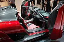 The Regera is a two-door targa top with a detachable roof that can be stowed in the boot.[16] It is the first hybrid car to be produced by Koenigsegg, as well as the first vehicle to use their Direct-Drive System for power delivery. As the company's 'grand touring' oriented offer in their two-car lineup, the Regera focuses more on interior luxury and daily usability instead of hardcore track performance like the Jesko.[17]