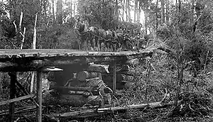William James Butler (born on 18 March 1858 at Leamington, Warwickshire, England; died on 10 December 1932 at Wellington) and his brother Joseph Butler (born on 1 March 1862 at Leamington; died on 30 September 1934 in London) had by 1892 become so wealthy that they could purchase a large saw mill at Kokiri, from which they began exporting to Australia. At Kokiri they pioneered the use of a steam-powered log hauler in New Zealand, and in 1895 introduced a steam locomotive running on a wooden tramway.[1] The use of the steam hauler resulted in great economy in hauling heavy logs from the bush. In fact, so powerful was the steam hauler that timber, which at one time had to be left in the bush, was taken out with but little trouble.[2]