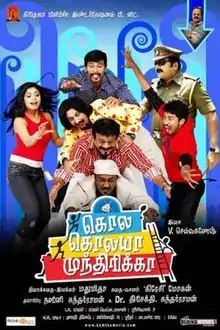 Kola Kolaya Mundhirika is a 2010 Tamil-language comedy film written by Crazy Mohan and directed by Madhumitha.[1] The film stars Jayaram, Karthik Kumar, and Shikha along with numerous popular Tamil comedy artists including M. S. Bhaskar, Pandiarajan, Anandaraj, Vasu Vikram and Vaiyapuri playing supporting roles. The film started its shooting on 8 May 2009 and released on 21 May 2010.[2]