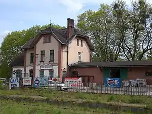 Kolbudy is a non-operational PKP railway station in Kolbudy (Pomeranian Voivodeship), Poland. Station was closed on May 29, 1994.