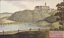After the death of Racek Kobyla in 1416, his widow ceded the castle to the Hussite nobleman William Kostka of Postupice in 1422.[6] At the beginning of the 16th century Albrecht Rendl of Oušava acquired the castle from the Kostka family. In 1516 he sold the castle to Ludvík Zajímač of Kunštát. However, Zajímač's debts prevented him from completing the payment for the castle. So, in 1525 Albrecht's sons gave the estate to Jaroslav of Selmberk, and the castle's name was changed to Komorní Hrádek.[1] Jaroslav reconstructed the castle into a Renaissance chateau.[5] In 1554 the castle was bought by the Waldstein family. Count František Josef of Valdštejn sold the castle to Count Jan Adolf of Metsch in 1733.[5]