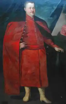 Konstanty Wasyl Ostrogski (2 February 1526 – 13 or 23 February 1608, also known as Kostiantyn Vasyl Ostrozkyi, Ukrainian: Костянтин-Василь Острозький, Belarusian: Канстантын Васіль Астрожскi, Lithuanian: Konstantinas Vasilijus Ostrogiškis) was a Ruthenian Orthodox magnate of the Polish–Lithuanian Commonwealth, a prince, starost of Volodymyr, marshal of Volhynia and voivode of the Kiev Voivodeship. Ostrogski refused to help False Dmitriy I and supported Jan Zamoyski.