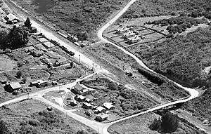A cattle yard was built in 1920.[4] The passing loop was lengthened in 1939,[5] to hold 219 rather than 97 wagons.[6] The work was done at the same time the loop at Waiteti was installed, the total cost for both being £19,000.[7]