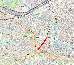 In 1974–1975, after the filling of a portion of Old Bydgoszcz Canal,[3] Kordeckiego street gained connection with Królowej Jadwigi Street at the crossing with Focha street in the north.