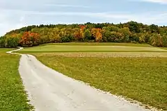 Not far north of Kornberg, the ruins of Landsöhr Castle are situated, colloquially also known as Bertaburg. The long-distance Swabian Jura North Rim hiking trail (HW 1) leads past Kornberg. Southeast of the mountain top the Kornberg Cottage is located, erected in 1922.[1]