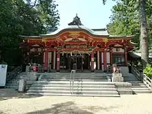 Koshikiiwa Jinja (越木岩神社, Koshikiiwa-jinja) is a Shinto shrine in Nishinomiya, Hyōgo, Japan. The other name of this shrine is Ebisu Daijingū. The focus of this shrine is a megalith called 'Koshiki-iwa', literally, 'Rice Steamer Rock', because ancient Japanese thought the shape resembled a traditional rice steamer. The height of the megalith is 10 metres with a circumference of 40 metres. The grounds of this shrine also include an outdoor sumo dohyo and a stage, possibly used for kagura.