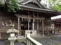 The main kami at this shrine is Kotonomachi-hime no mikoto (己等乃麻知媛命), the mother of Ame-no-Koyane and the ancestor of the Nakatomi clan, and the Fujiwara clan. However, as the one of the shrine implies, the main focus of the shrine is on the Hachiman trinity, which at this shrine are identified as Empress Jingū, Emperor Ōjin and Tamayori-hime.[3]