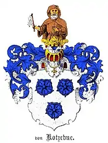The Kotzebue family appears in historical documents as early as 1375. Early known members of the family include Henning Kossebu, a diplomat in Stendal in the Altmark, and Arnd Cassebu, a councillor in Salzwedel.[2] The ancestor of the modern family was Jakob Kotzebue (died 1597), a citizen and council treasurer in Magdeburg. His son Johann (1591–1629) was a Lutheran theologian, rector in Quedlinburg and minister in St. Jakob's church de in Magdeburg. Johann's son of the same name was also a Lutheran theologian and an abbot in the Loccum Abbey.