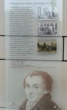 The most famous and prominent member of the family, the world-famous playwright, writer and librettist August von Kotzebue (1761-1819), became renowned for his dramatic works - their politics drew the attention of many, including famous figures such as Beethoven and Goethe. He was ennobled into the hereditary Russian nobility in 1786. However, he also made a lot of enemies and became a much-hated man in the eyes of many Germans, with many seeing him as a reactionary and a spy. Karl Ludwig Sand assassinated August von Kotzebue in 1819; the murder gave Prince von Metternich the opportunity to issue the Carlsbad Decrees which imposed political restrictions in universities all over Germany.