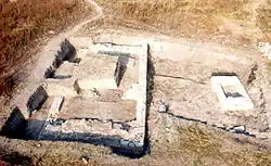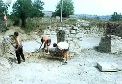 Recent excavations by Veliko Tarnovo University “St. Cyril and St. Methodius" have revealed a huge Roman building from the 4th century AD within the walls which appears to have been a horreum (i.e. a granary).[1] It measured over 60m x 25m, though it has not been fully exposed. It had a massive double door of 2.4m width. The walls of the building are 1.3m wide reinforced with external buttresses. It had two stories and a basement and was constructed with opus mixtum. The granary was plundered and set on fire around 378 AD probably by the Goths.